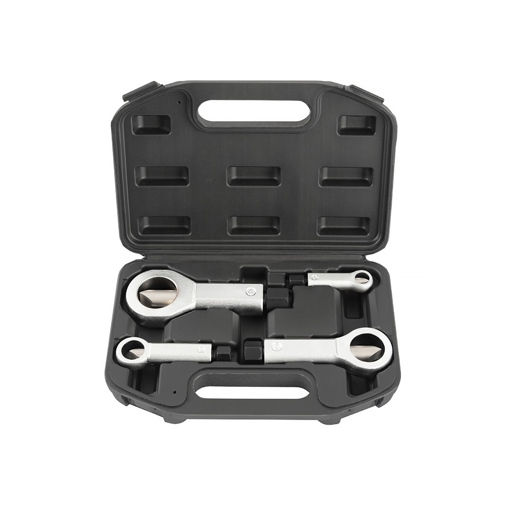 Somun ayırıcı seti, dişli cıvataya zarar vermeden sıkışmış, paslı veya aşırı sıkılmış somunları çıkarmak için ideal çözümdür.