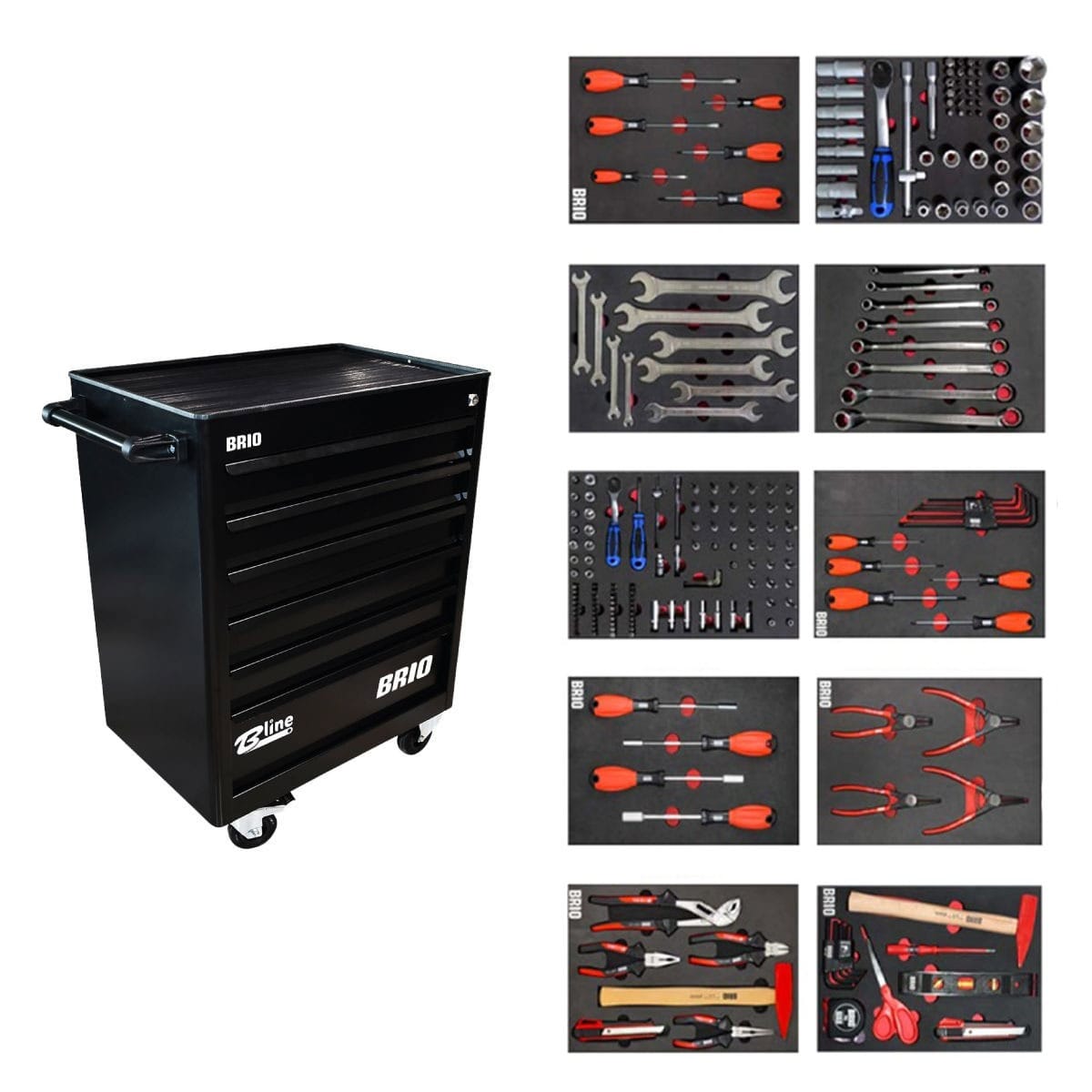 Brio Hareketli Takım Dolabı 6 Çekmece New 233 Parça Siyah Dolu